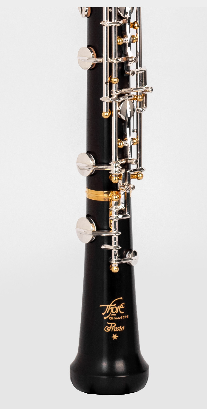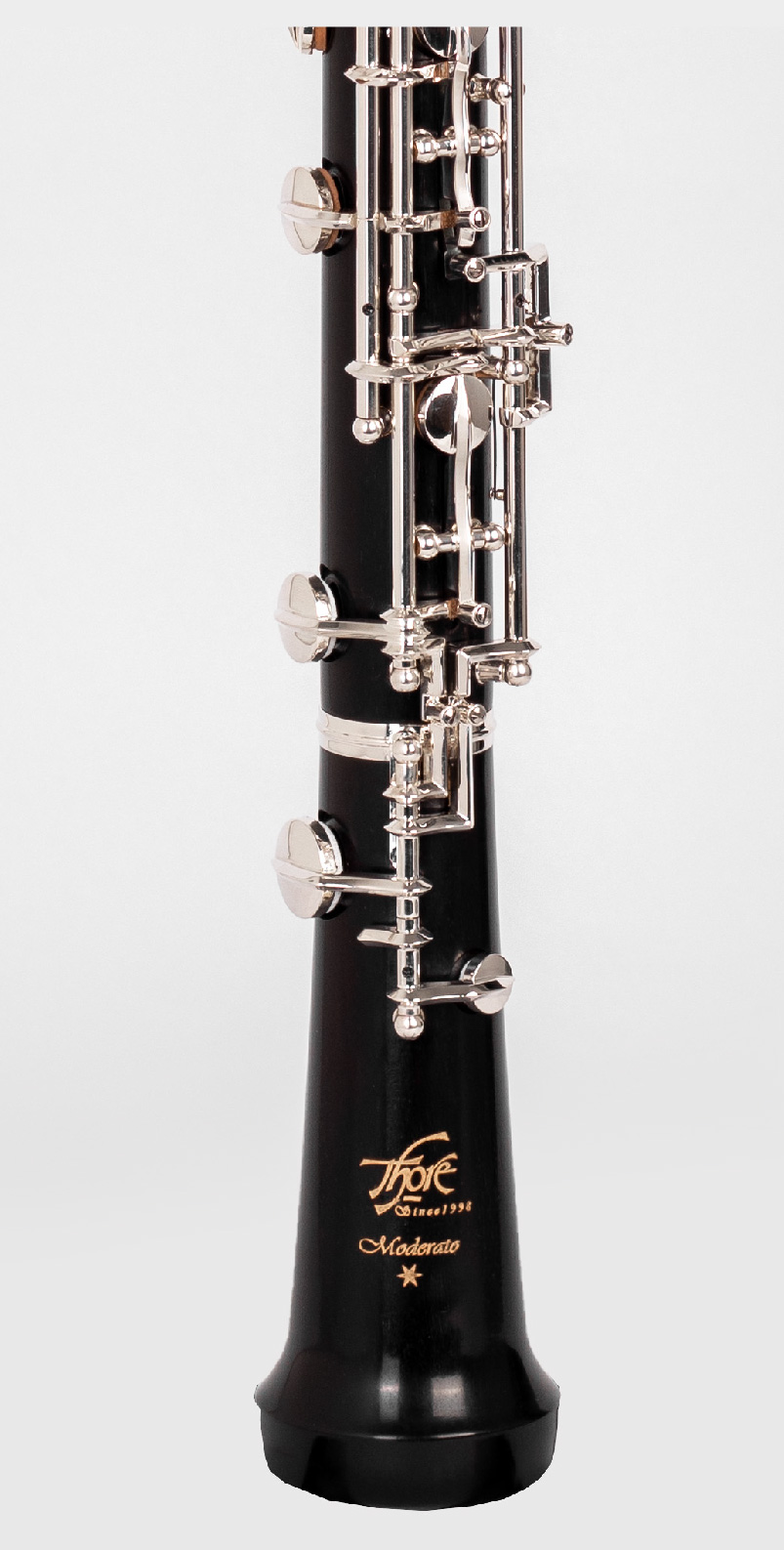 Following the highest demands and feedback from our clients and oboists worldwide, and considering the various climatic conditions around the globe, THORE has created an innovative solution for their oboes. Two models – Moderato and Presto – form the hybrid line of instruments, featuring a special upper joint made from the highest quality synthetic material. This joint responds in the same way as natural grenadilla wood but is resistant to humidity changes and extreme temperatures.